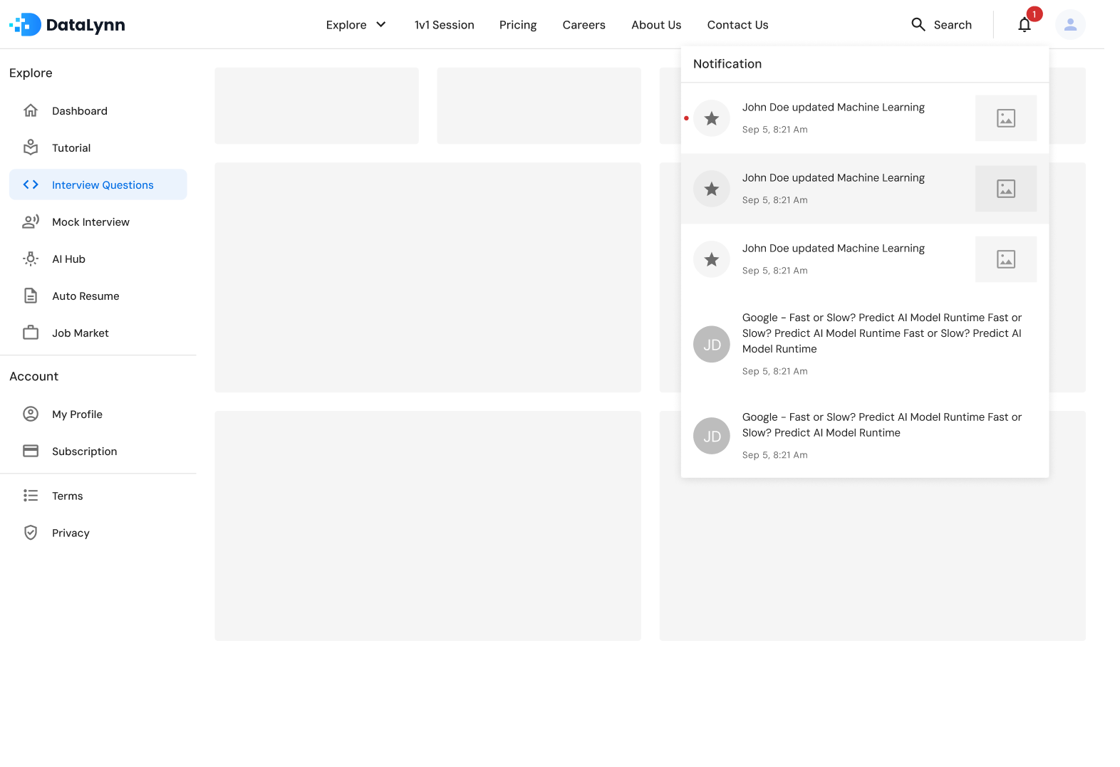 This feature offers interview questions based on real tech role scenarios and frequently tested topics.
